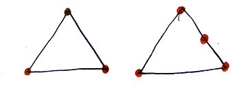 | Correct ways to split up the triangle | V, F and E for correct ways | Incorrect ways to split up the triangle | What's wrong |