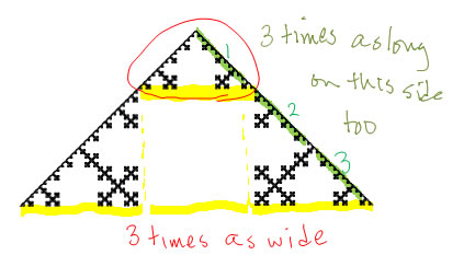 B. Compare the number of copies for this scale factor to the copies needed for a 1D and 2D shape. What does this tell about the fractal dimension of the Sierpinski triangle?