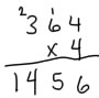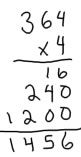 2. Sketch what 364x4 would look like if done with a non-proportional material such as the Montessori stamp game or those shown in Primary Mathematics 3A.