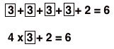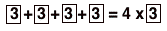 | Remember that 4 times 3 means 4 threes, so when I have 3+3+3+3, that means the same thing as 4x3 |