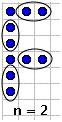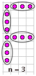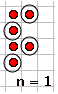 Next, you want to look for the number (the step number) in the growing parts of your pattern. This is usually easiest to see with the larger versions of the pattern (and kind of hard to see in n=1), but once you find the right places, you should be able to circle n dots in the same places in each of the examples: