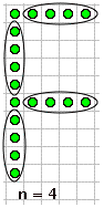 | I have 4xn because I have 4 groups of n in each of the F's, and I have +2 because there are always 2 extra dots. |