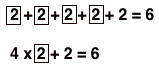 When I make the jump from writing the numbers as a sum to writing them as a product, I also need to remind my students why those are doing the same thing. I might say something like: